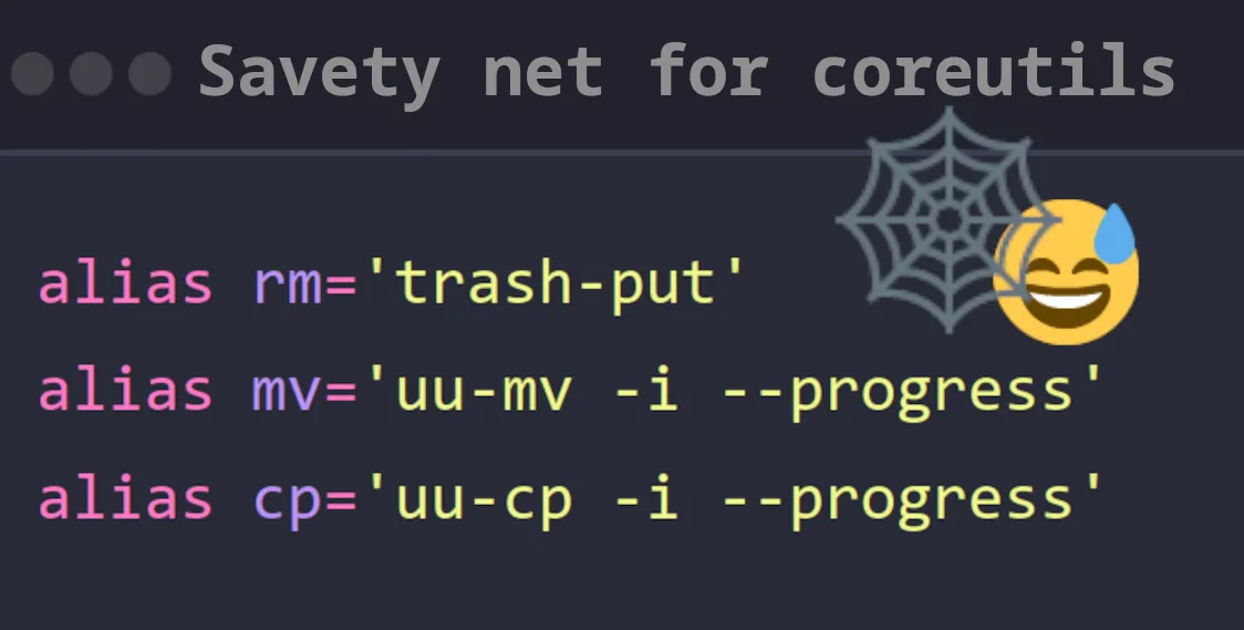 alias rm='rm -i'alias mv='mv -i'alias cp='cp -i'While we’re at it, let’s also add a progress bar. For that, we will use uutils-coreutils, which is a drop-in reimplementation of coreutils in Rust.